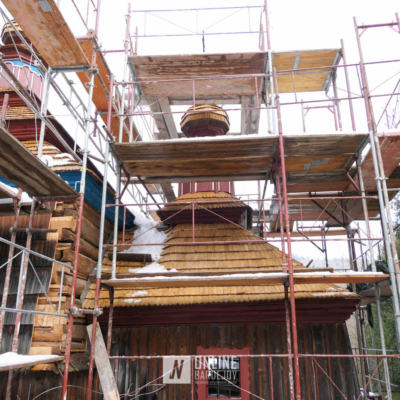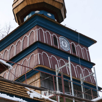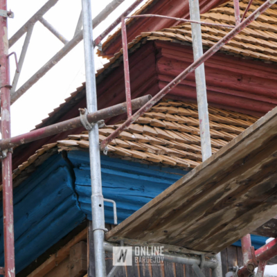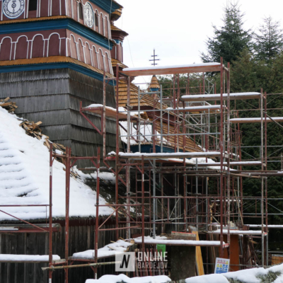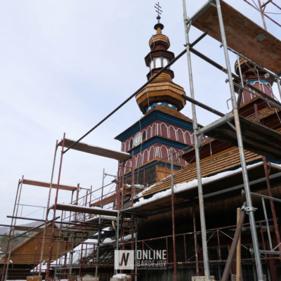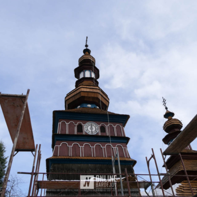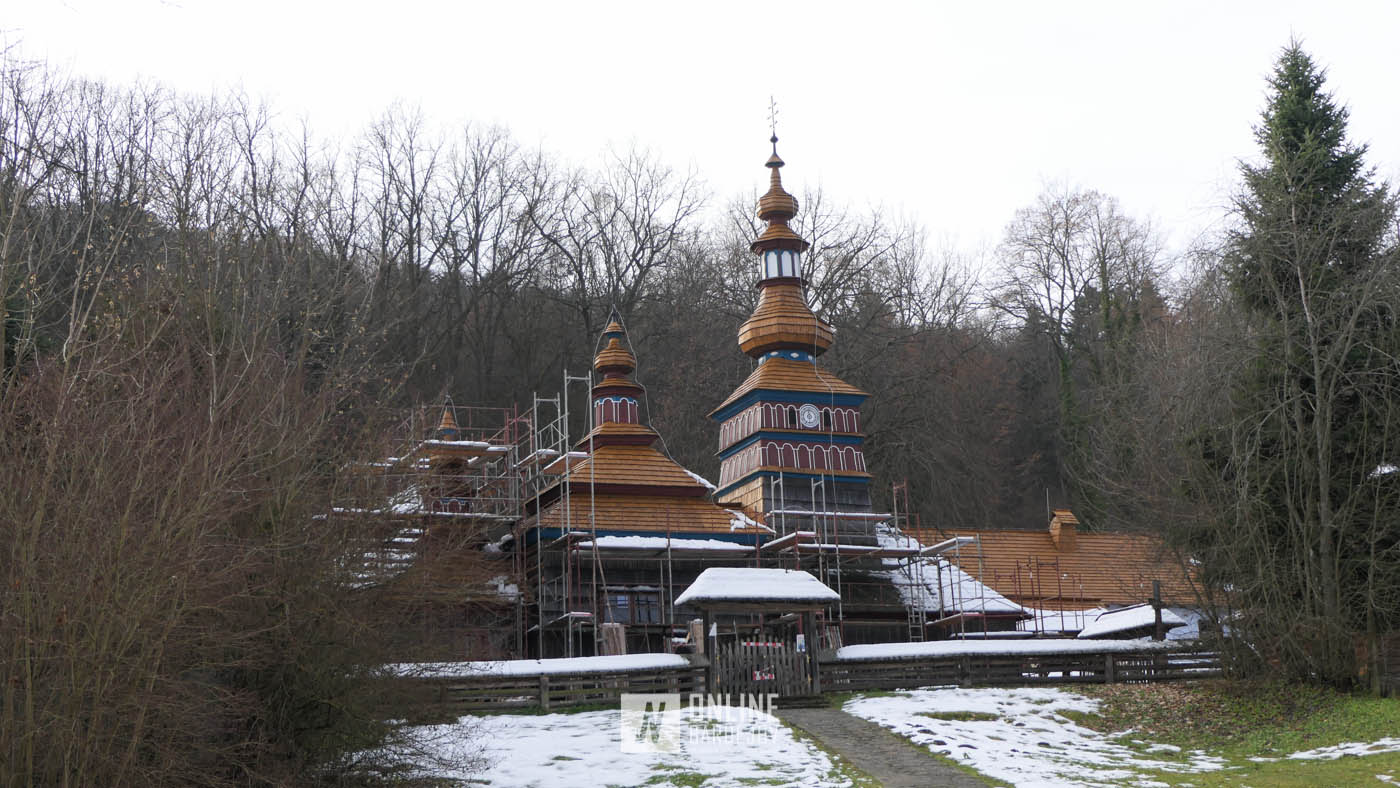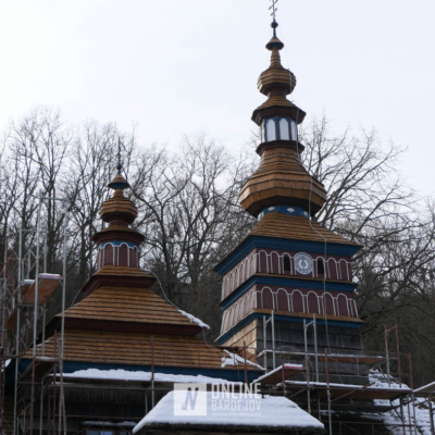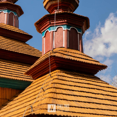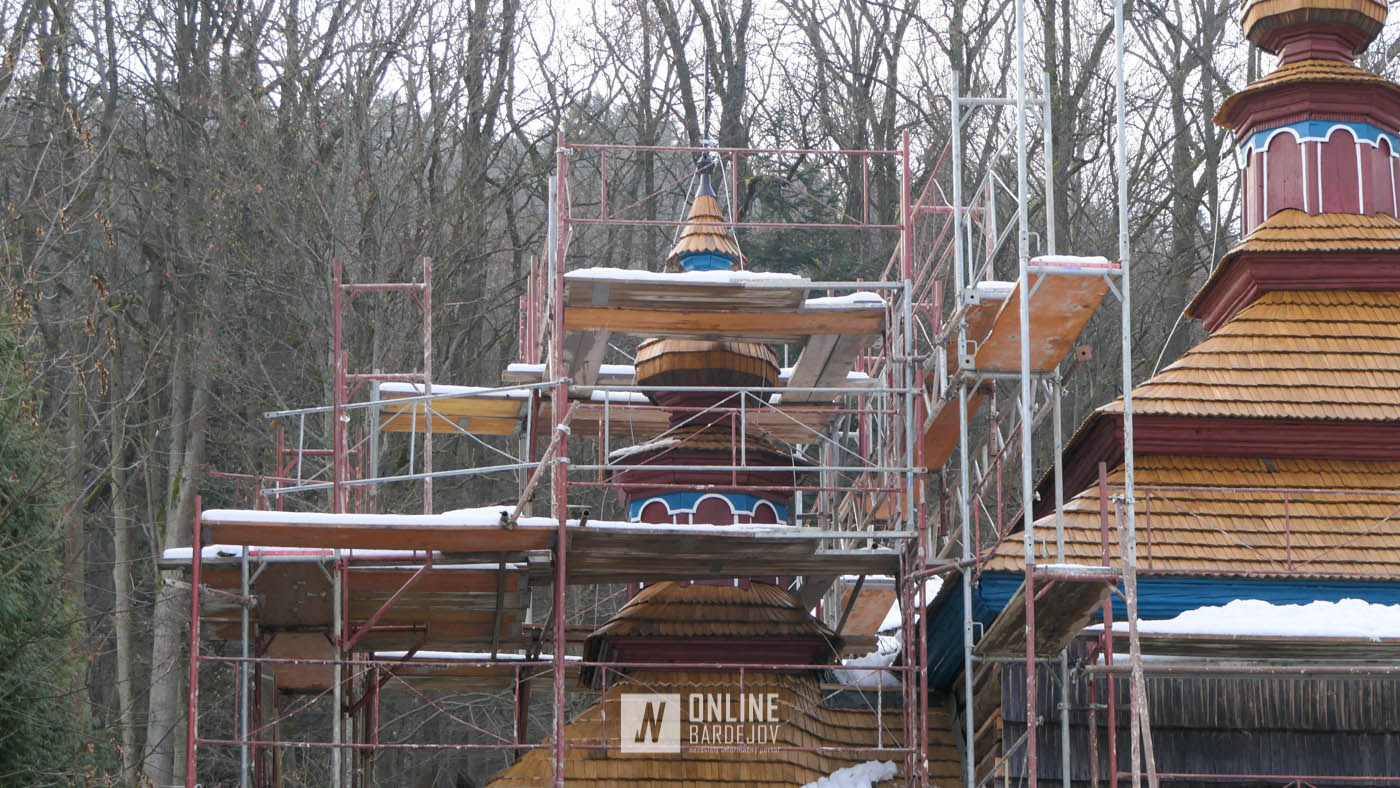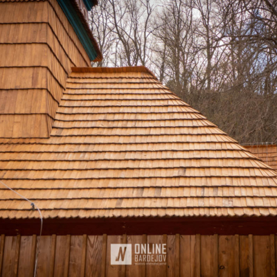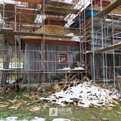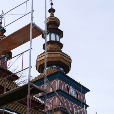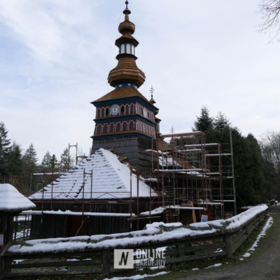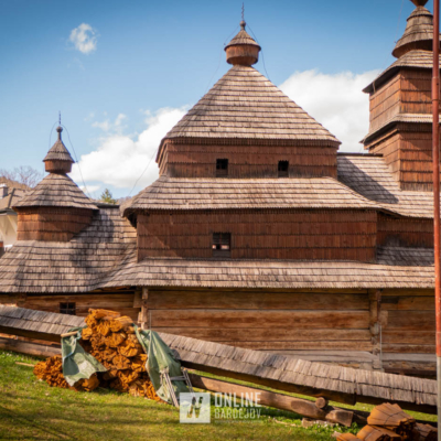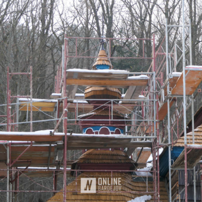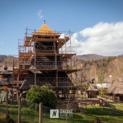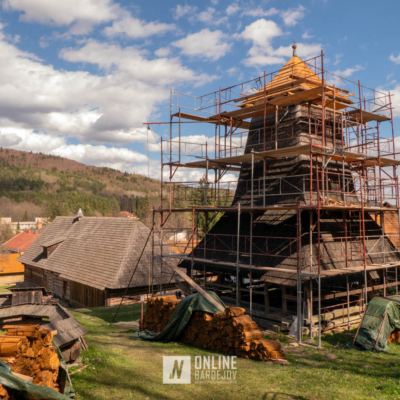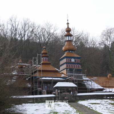 Zachytili sme postup rekonštrukčných prác v novembri 2025 na Gréckokatolíckom drevenom Kostole Ochrany Presvätej Bohorodičky z roku 1730, ktorý bol do skanzenu premiestnený v roku 1931. Na fotografiách vidieť výmenu najviac poškodených zrubových častí nosnej konštrukcie pod šindľovým opláštením a strechu, ktorá bola naozaj v dezolátnom stave. V chráme je jeden z najkrajších a najzachovalejších ikonostasov z 18. storočia. Exteriér chrámu bol naposledy zreštaurovaný v roku 2006.