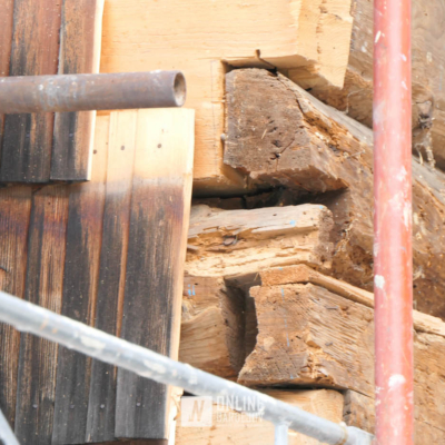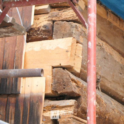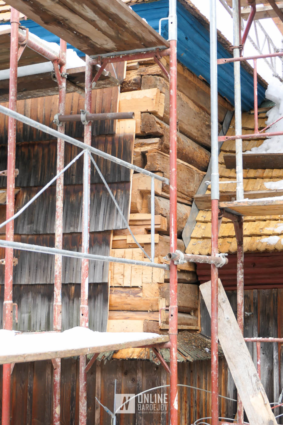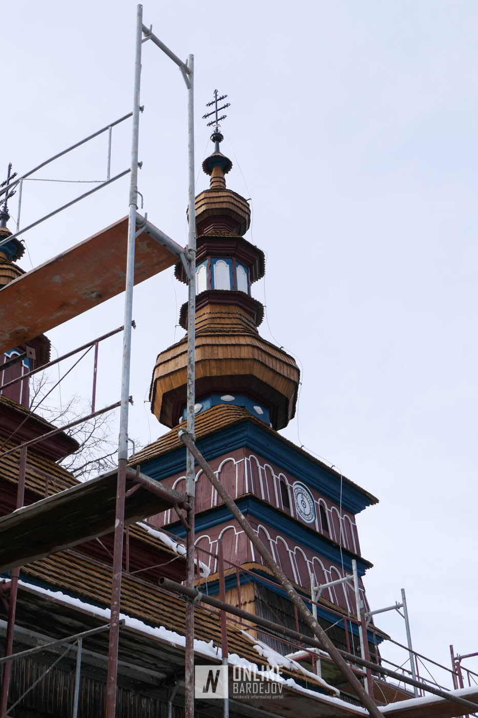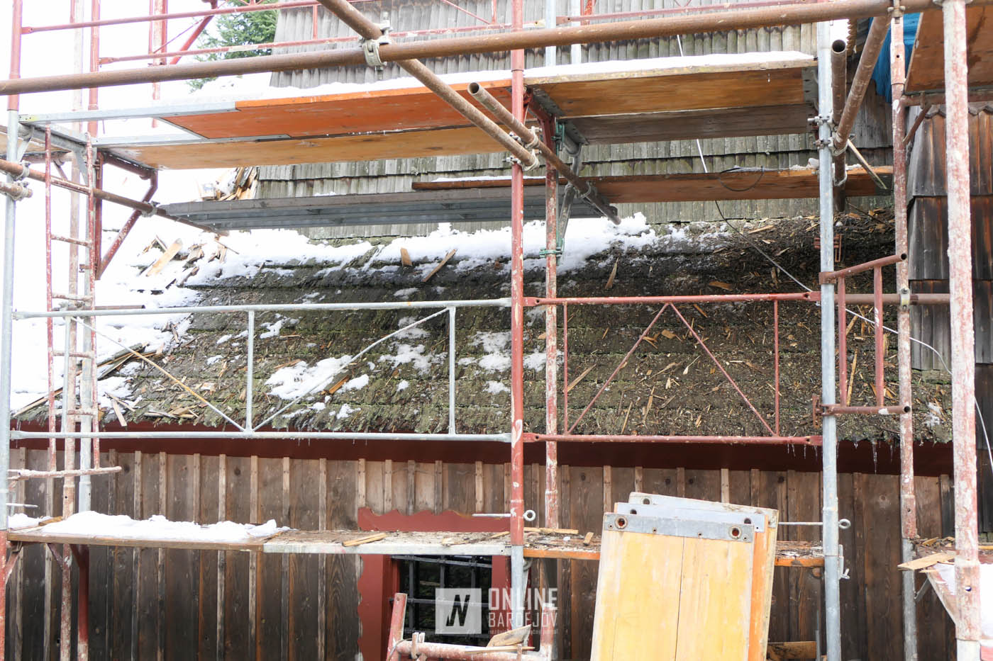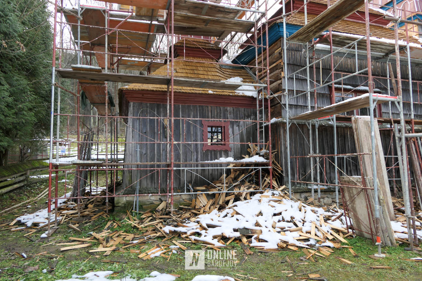 Zachytili sme postup rekonštrukčných prác v novembri 2025 na Gréckokatolíckom drevenom Kostole Ochrany Presvätej Bohorodičky z roku 1730, ktorý bol do skanzenu premiestnený v roku 1931. Na fotografiách vidieť výmenu najviac poškodených zrubových častí nosnej konštrukcie pod šindľovým opláštením a strechu, ktorá bola naozaj v dezolátnom stave. V chráme je jeden z najkrajších a najzachovalejších ikonostasov z 18. storočia. Exteriér chrámu bol naposledy zreštaurovaný v roku 2006.